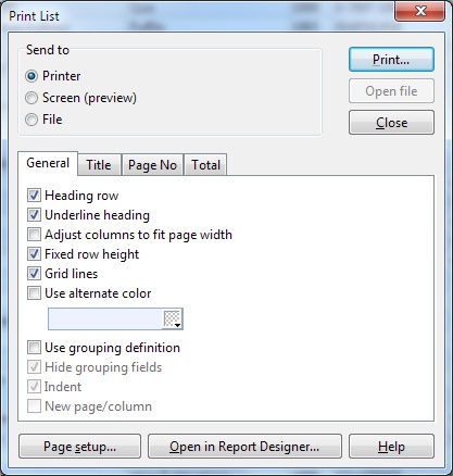 To print the browse list, choose Print from the File menu. This will open the 'Print List' window.