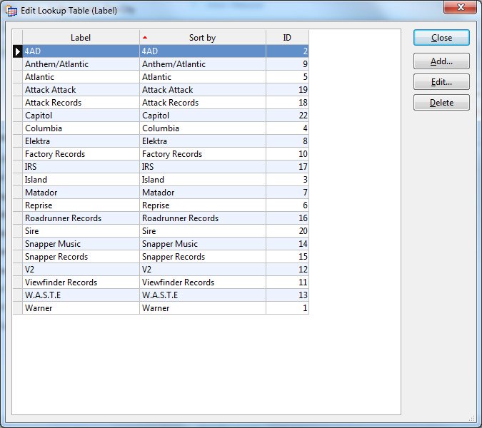 From both the Lookup View and the 'Edit Lookup Table' window you can add, edit and delete lookup items.