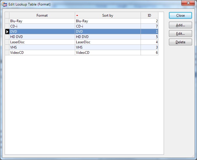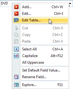 You can edit lookup tables from both the Lookup View, and the 'Edit Lookup Table' window. To open this window, right-click a data field linked to a lookup table (for example Format), and choose Edit Lookup Table from the popup menu.
