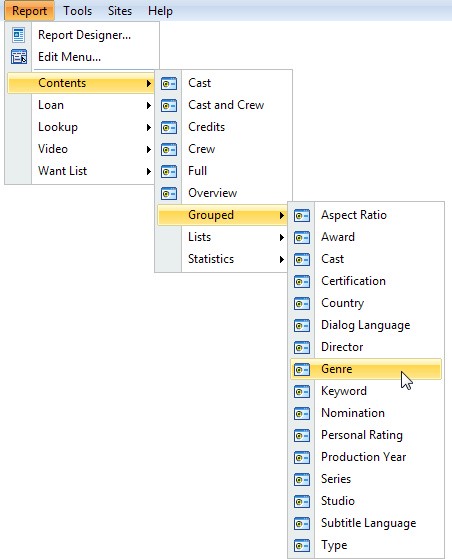 CATVids comes with many pre-defined reports. These reports are available from the Report menu.