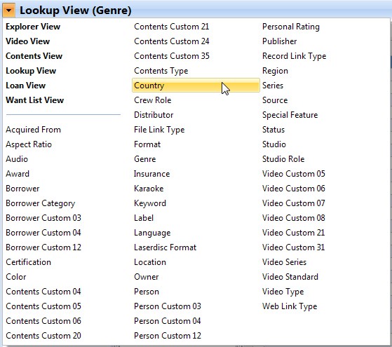 | • | Lookup tables. Lookup tables are lists that contain information linked to data fields, for example the Person, Format or Genre lists. When you modify an entry in a lookup table, for example to fix a typing error, the change will be reflected in all data fields that are linked to this lookup table.