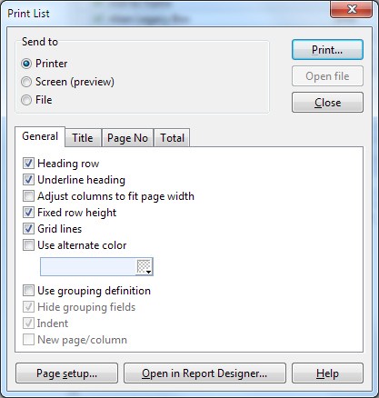 To print the browse list, choose Print from the File menu. This will open the 'Print List' window.