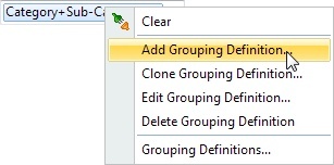 To create a new grouping definition, right-click the grouping definition drop-down list and choose Add Grouping Definition from the popup menu.