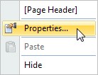 To modify the properties of a band (for example height or fill color), right-click the band and choose Properties from the popup menu.