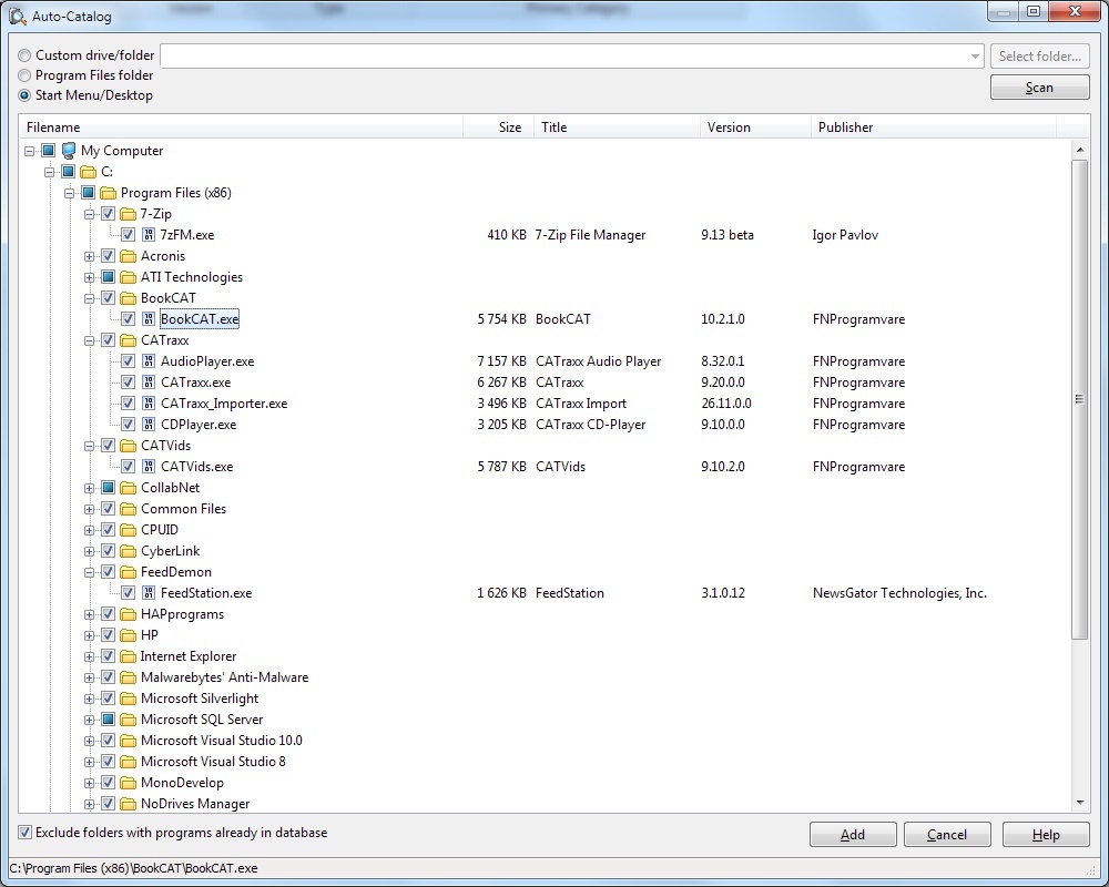 The auto-catalog function will search your computer for installed programs and automatically add the programs to the database.