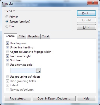 To print the browse list, choose Print from the File menu. This will open the 'Print List' window.